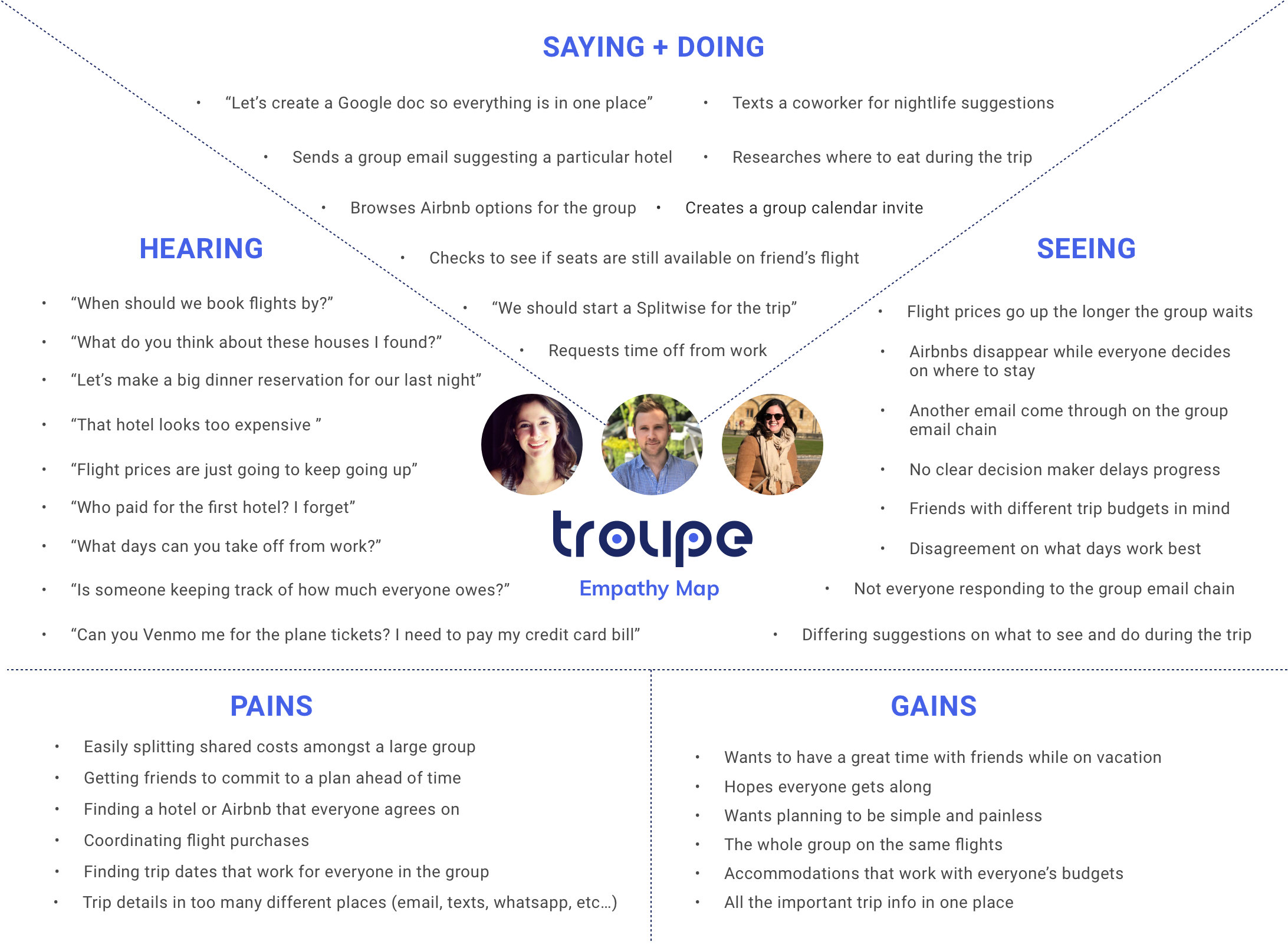 To make the process both more enjoyable and more manageable, Troupe was developed as a single-app solution for collaborative group travel. Instead of endless email chains and one-off Google Docs, Troupe centralizes your communications, expenses, reservations, and bookings into a single trip itinerary that can be shared amongst the travelers in your group.