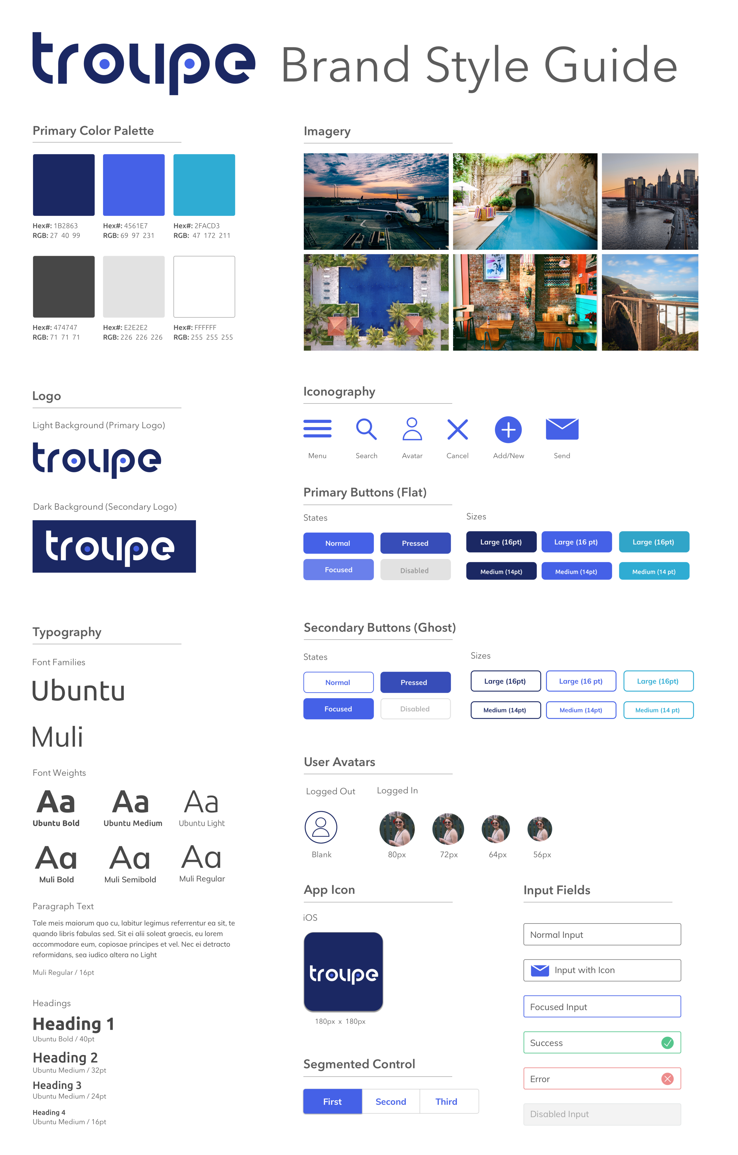 Style Guide for the Troupe brand, including some key UI elements