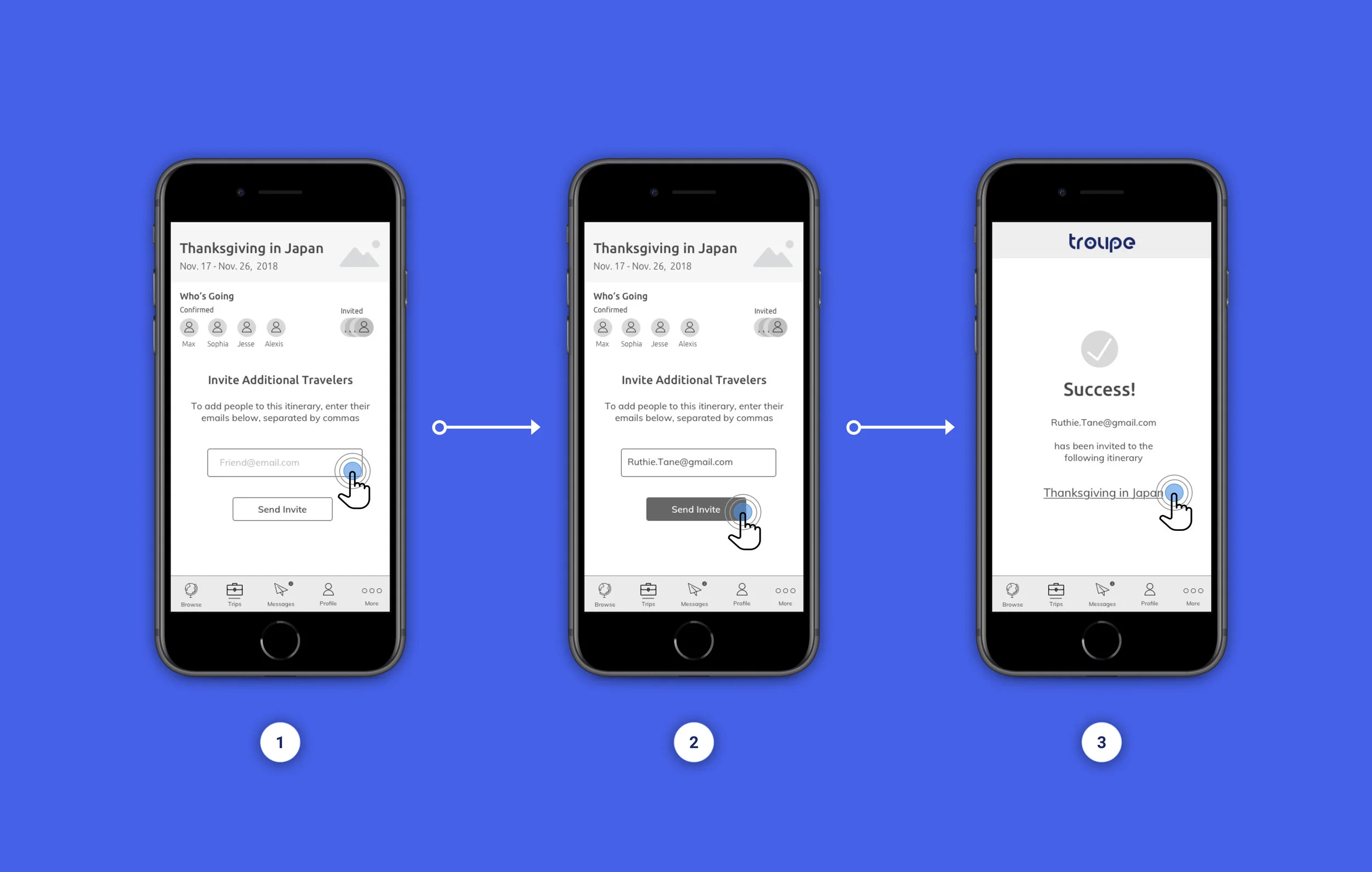 Task flow for inviting a new traveler to an existing intinerary